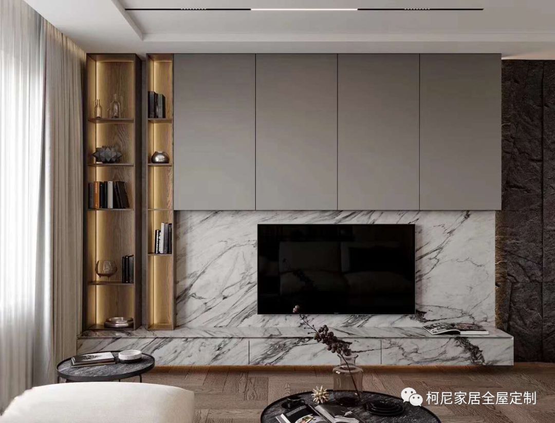嵌入式电视柜设计内嵌于墙面的电视柜最节省空间,根据墙面特点和电视的大小,现场定制...